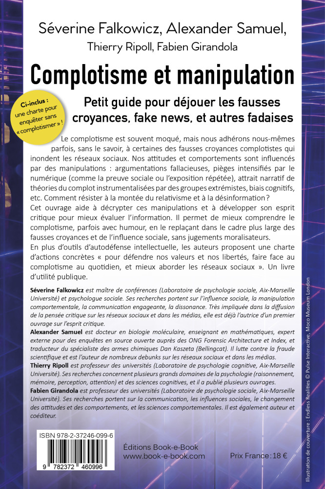 S’appuyant sur de nombreux exemples et références, les auteurs expliquent comment fausses croyances, complotisme et théories du complot nous impactent, nous instrumentalisent. Alors qu’est-ce que les fausses croyances, les théories du complot ? Qu’est-ce que le complotisme ? Quelles sont les variables qui favorisent leur émergence et leur développement ? Comment se prémunir contre la désinformation et les fake news qui alimentent souvent les théories du complot ?